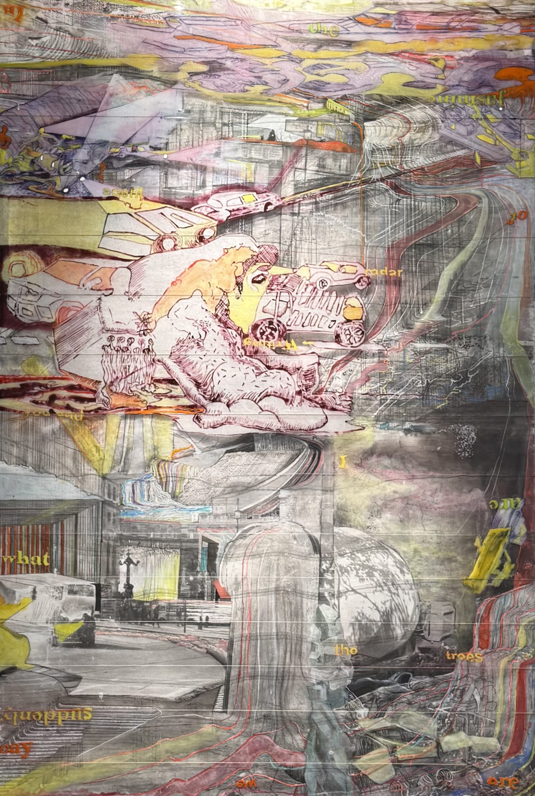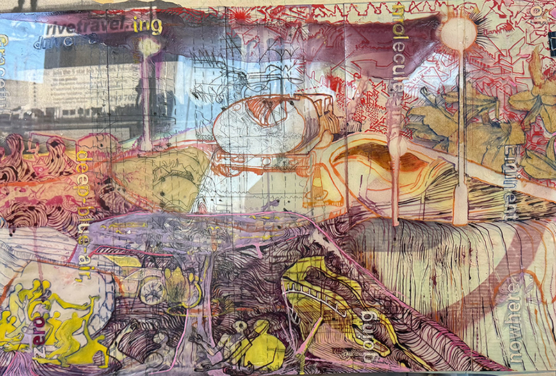 Acrylic inks photocopy oil paint salvaged perspex tissue paper watercolour paper